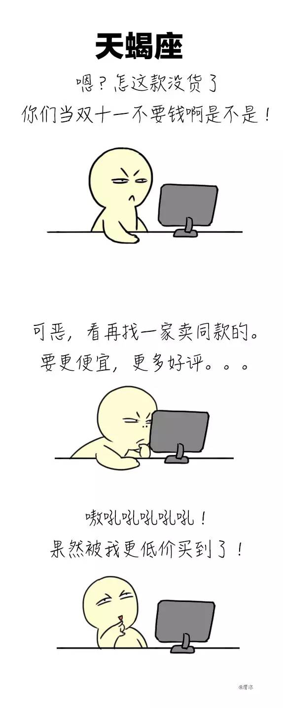 天蝎座:不达目的决不罢休,哪怕只是网购,也要做到尽善尽美。想要的一定搞到手。