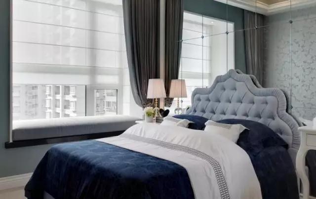 卧室选用双层窗帘,能营造出一个安静、黑暗的睡眠环境,尤其是朝南的卧室,可选用日夜帘。